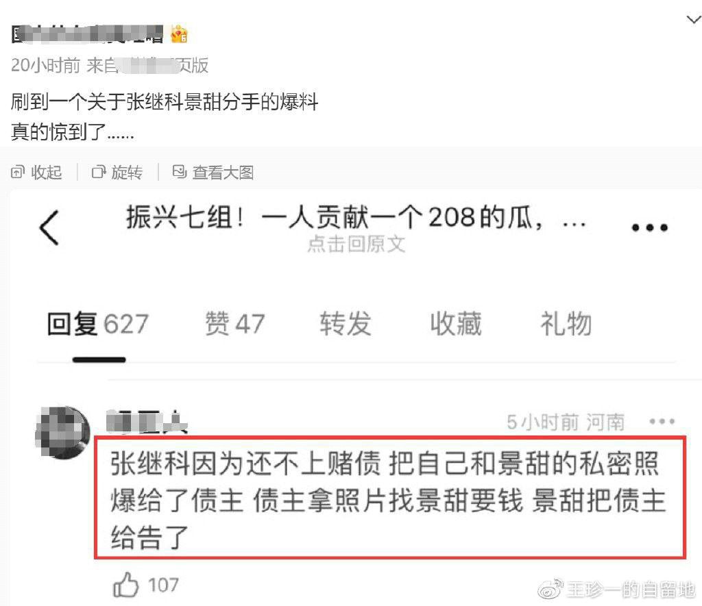 据悉,事情的起因是有一位昵称为 “绿巨人” 的网友在小组论坛上留言爆料,大概意思是说知名运动员张继科喜欢赌钱,但手气不行在外面欠了不少赌债,为了还上赌债,张继科把自己和景甜的私密照片抵押给了债主,结果债主真的拿照片去找景甜要钱,但被女方起诉了。