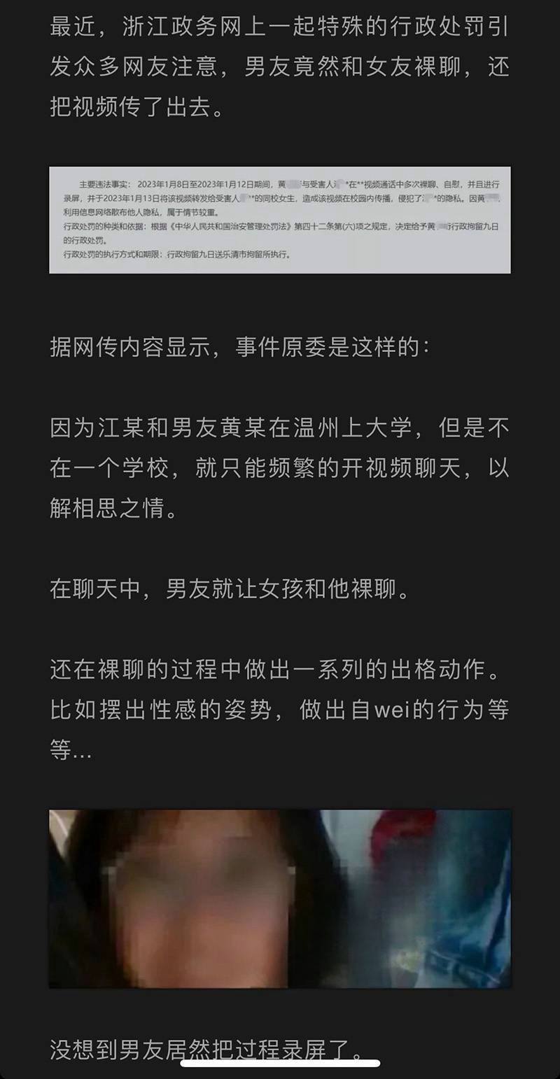 温州商学院 和男友裸聊被男友录屏转发炫耀事件